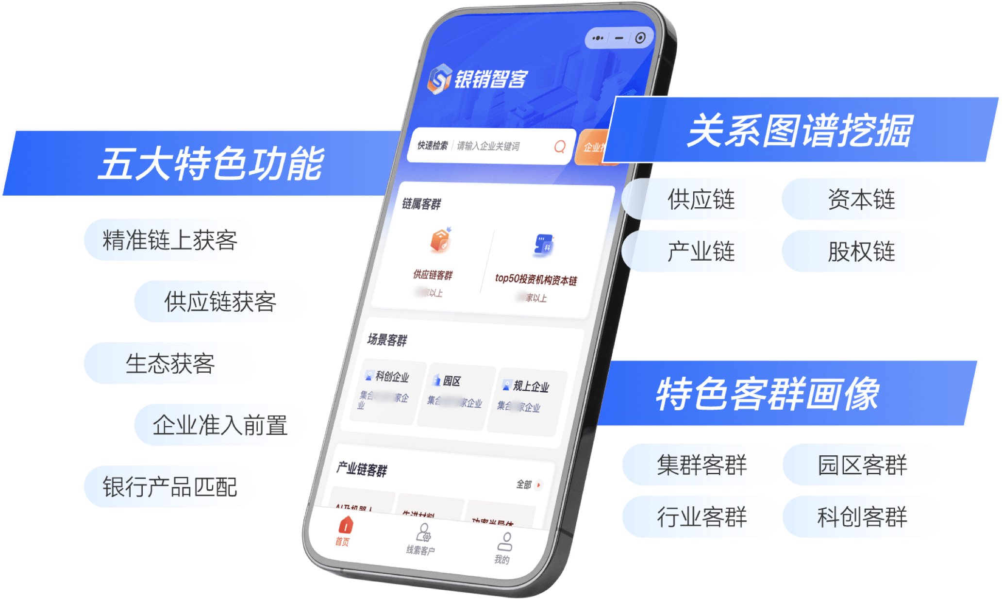 聚焦营销全链路,通过寻客-评客-知客-稳客-管客五环,帮助客户经理实现客户智能分层营销及闭环管理
