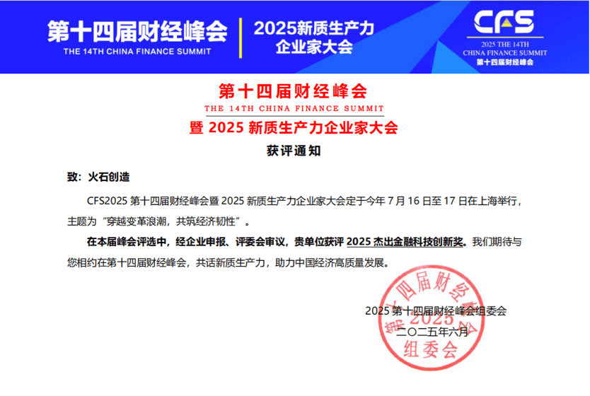火石创造获第十四届财经峰会2025杰出金融科技创新奖