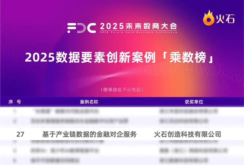 火石创造“基于产业链数据的金融对企服务”入选2025数据要素创新案例乘数榜